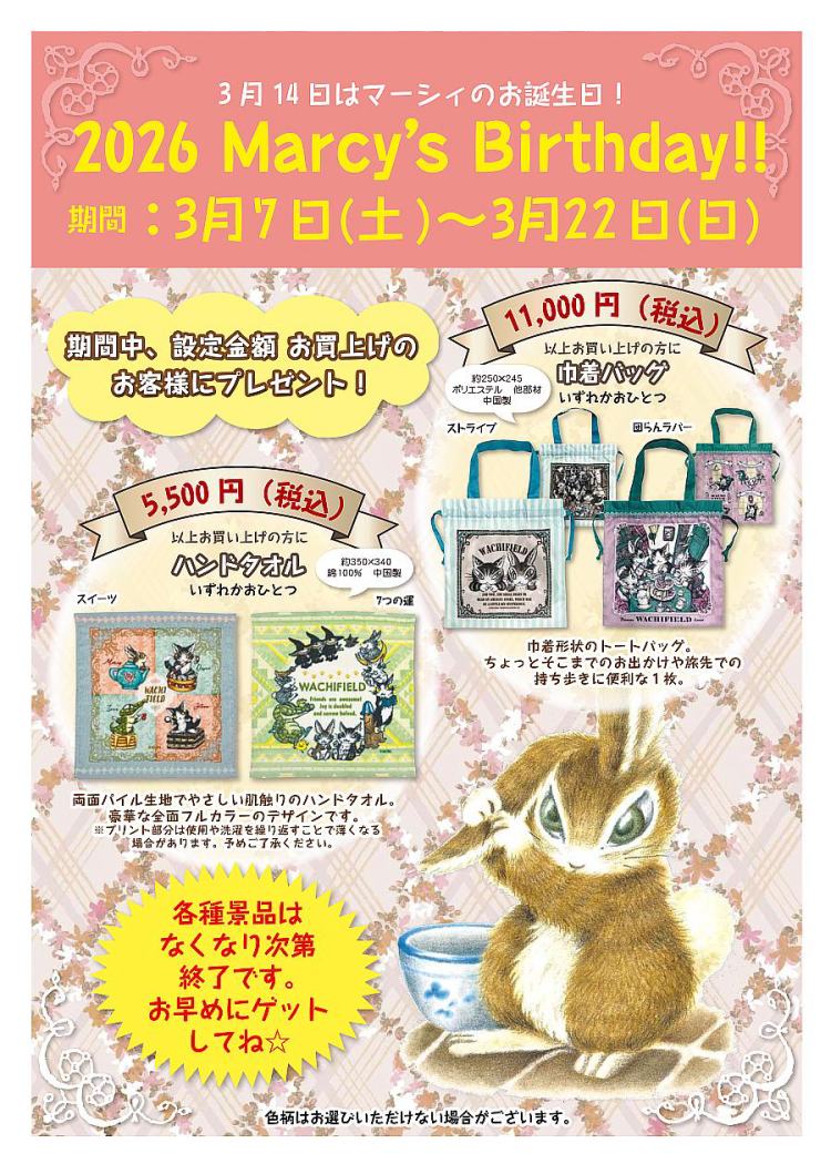 | 3月より実店舗営業日が一部変更となります。 各月の予定は前月月末頃お知らせいたします。 |